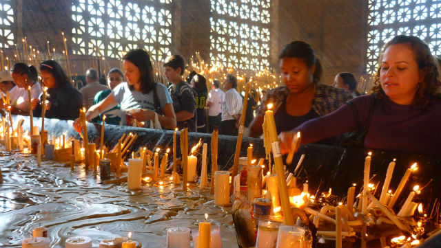 Estes milhões de fiéis viajam até a cidade para visitar o Santuário Nacional de Aparecida, o maior dedicado a Nossa Senhora do mundo. A imponente Basílica às margens da Via Dutra, que liga São Paulo ao Rio de Janeiro, pode ser vista de longe.