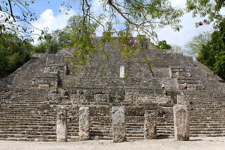 O Templo 2 é o que fica na Plaza Central e é o mais importante e mais alto templo da Península de Yucatán, com 49m. Constituído a partir de 550 a.C., levou mil anos pra ficar pronto e já teve até 60m de altura.