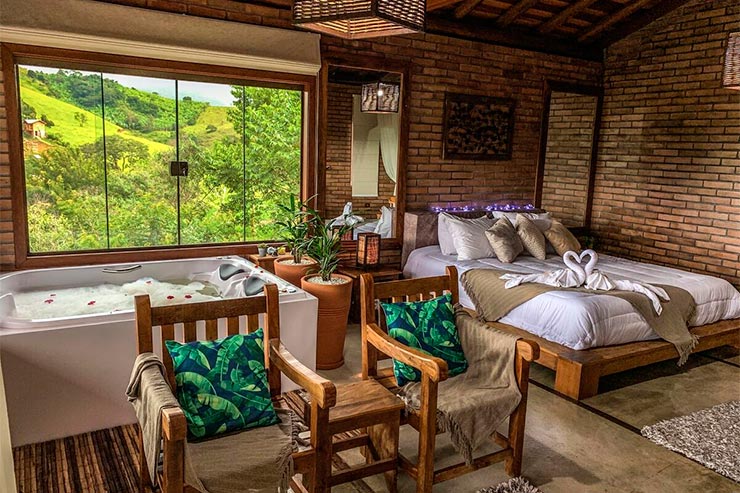 A Espelho d’água é outra opção entre os hotéis e pousadas em Gonçalves. Está a apenas 1 km de distância do centro da cidade, mas, mesmo assim, em meio à natureza. Os chalés têm sala de estar e banheira de hidromassagem. Os hóspedes gostam da vista, do atendimento e da localização (nota 9,1 no Booking).