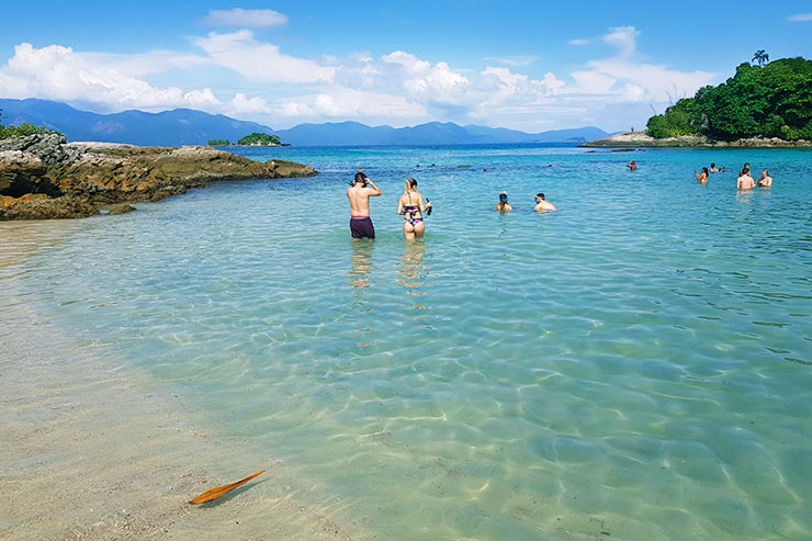 Agora vamos falar desse paraíso… imagina uma ilha bem pequena e de areias branquinhas, mas cercada por um mar clarinho, com tons que vão do azul ao verde. É assim a beleza desse lugar, uma das melhores praias de Angra.