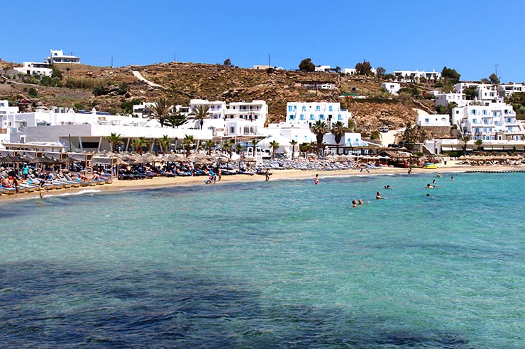Por conta da proximidade com o centrinho de Mykonos e também a boa estrutura da vila de Psarou, onde há inclusive muitas opções de hospedagem, essa é uma das praias mais populares.