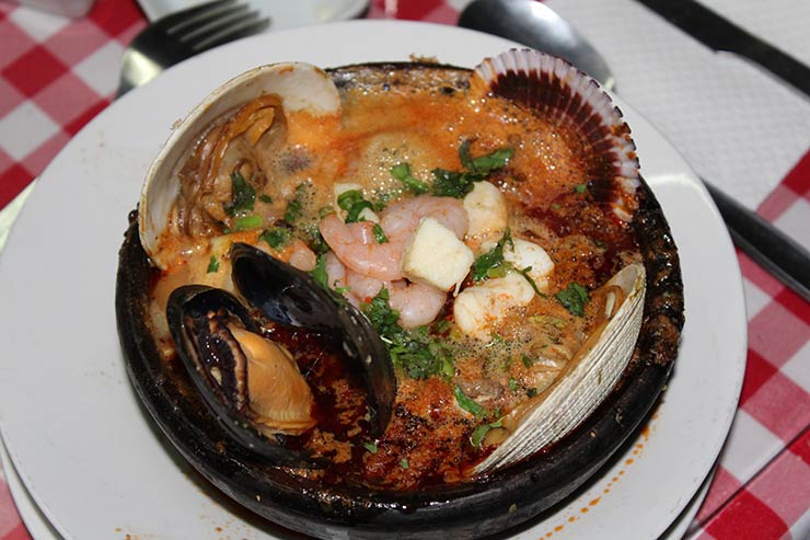 Encontrei um bom custo-benefício no Rincón Marino, onde comemos uma deliciosa paila de marisco, uma espécie de mariscada, e um prato salmão. O ceviche de entrada foi cortesia da casa.