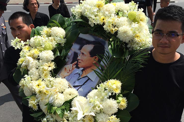 Andando perto do Grand Palace dava para ver o número de pessoas com roupas escuras que seguiam até lá para prestar sua última homenagem ao rei embaixo do sol escaldante, da chuva ou à noite. Estava sempre lotado de súditos.