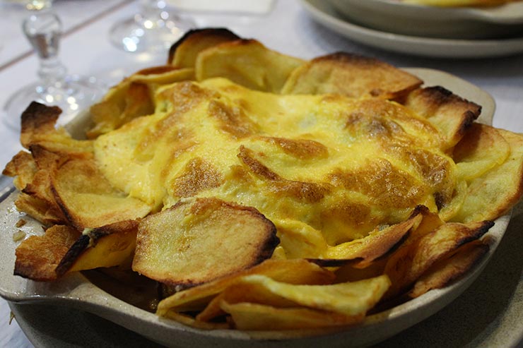 Como tínhamos pedido um para cada um e os pratos eram bem grandes, demos sorte por não termos comido entrada, apenas um pãozinho com azeite. Por falar em entradas, em Portugal é comum os garçons já trazerem à mesa vários pratinhos com pão, manteiga, presuntos, quejos, azeitonas… é como nosso couvert no Brasil. Só que eles não perguntam se você quer e pode ter certeza que esses petiscos virão listados na sua conta. Então fique atento e saiba não há problema, inclusive, em perguntar os preços, já que esses itens dificilmente aparecem nos cardápios.