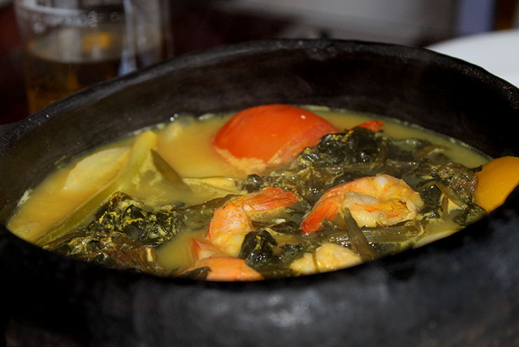 Com clima ainda familiar, o prato chefe da casa é a caldeirada paraense, que se parece com uma moqueca feita com filhote cozido, jambu, tucupi e camarão. Uma delícia!