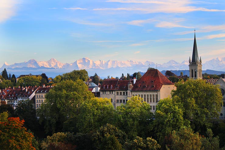 Localizado bem no centro de Berna, esse hotel tem uma vista linda do Centro Histórico com os Alpes de pano de fundo. Durante nossa estadia, praticamente não precisamos pegar transporte público, percorremos a maioria das atrações a pé.