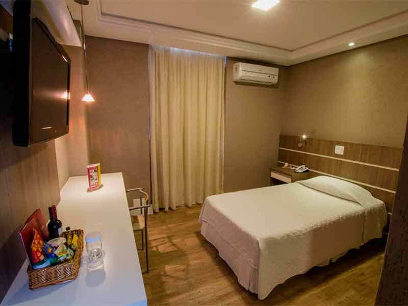 Os quartos são novos e possuem ar-condicionado, mesa de trabalho, cofre e TV. Além disso, há opções de diárias com ou sem café da manhã.