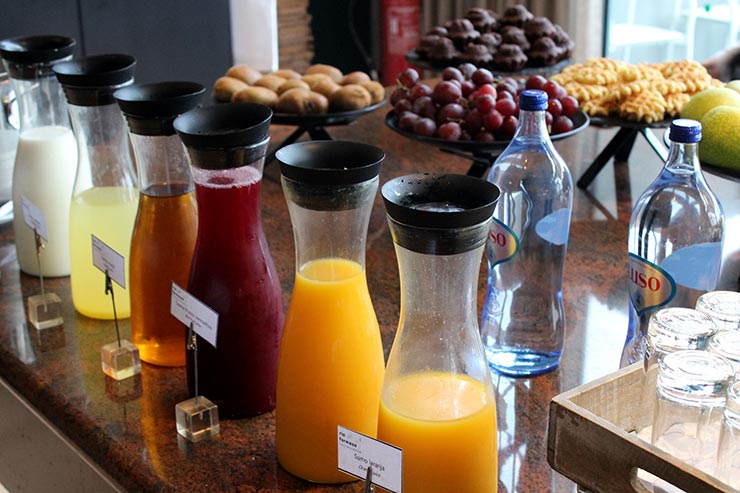 Também na cobertura fica o restaurante bar onde é servido o café da manhã, outro ponto alto do Hotel Faro. São muito boas as opções de sucos, frutas, pães, doces, pratos quentes e frios, inclusive salmão marinado.