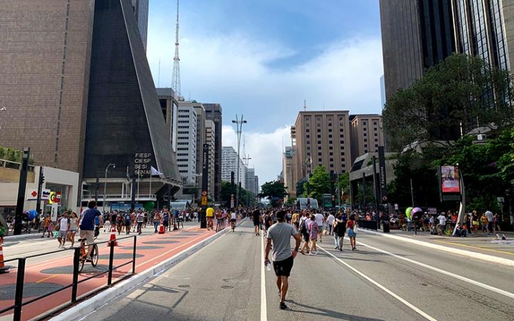 A Avenida Paulista fica fechada para carros e aberta para pedestres aos domingos e feriados das 8h da manhã às 16h.