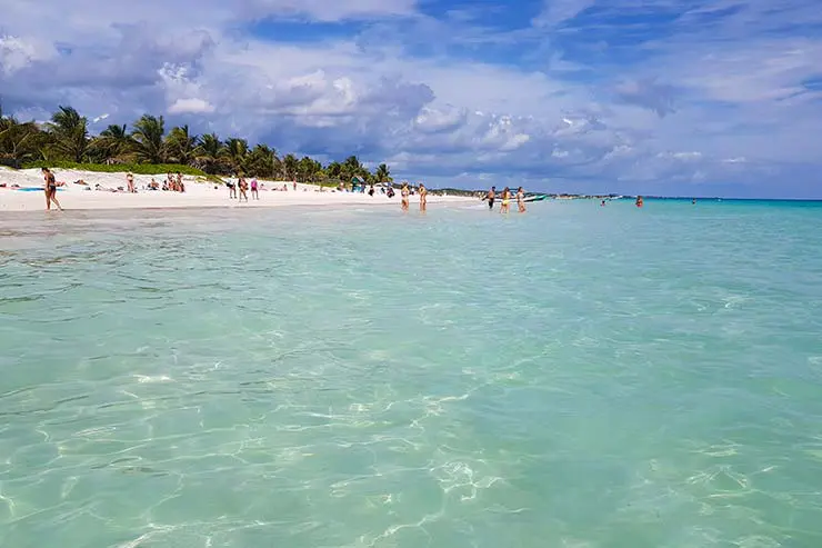 As águas cristalinas com tons azuis, a areia branquinha, a boa estrutura e a lotação bem menor que Playa del Carmen são alguns dos fatores que fazem dela, na minha opinião, a melhor praia de Tulum.