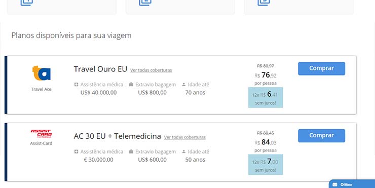 Como dissemos, eles não são a seguradora, mas sim um comparador de preços. Entre os seguros que vendem estão as empresas mais famosas do ramo, como Assist Card, Travel Ace, Affinity, GTA, entre outras.