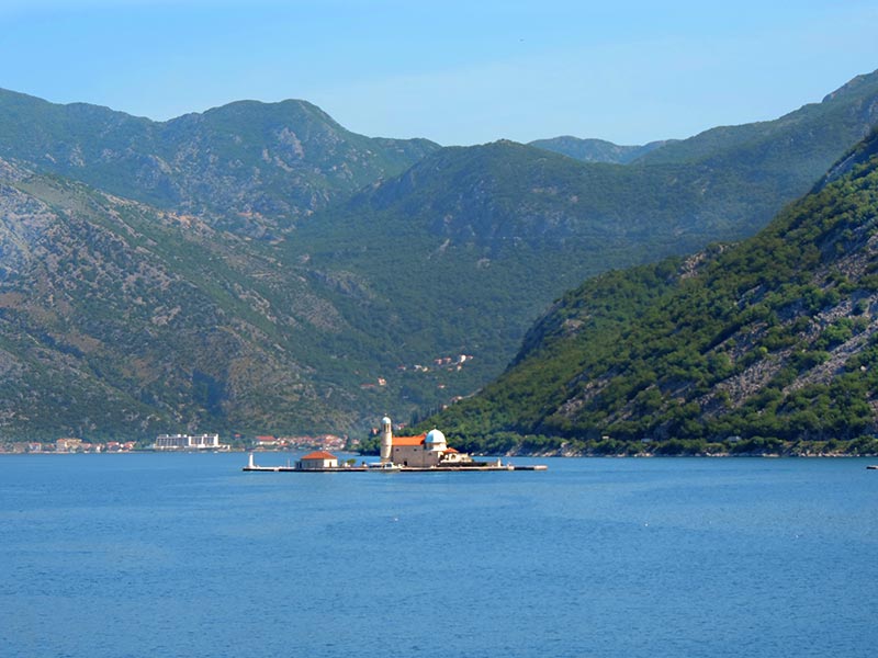 Na cidade de Perast, uma ilha artificial abriga a surpreendente igreja de Nossa Senhora das Pedras, com mais de 500 anos. Reza a lenda que um pescador construiu o santuário após encontrar uma imagem da santa na Baía de Kotor.